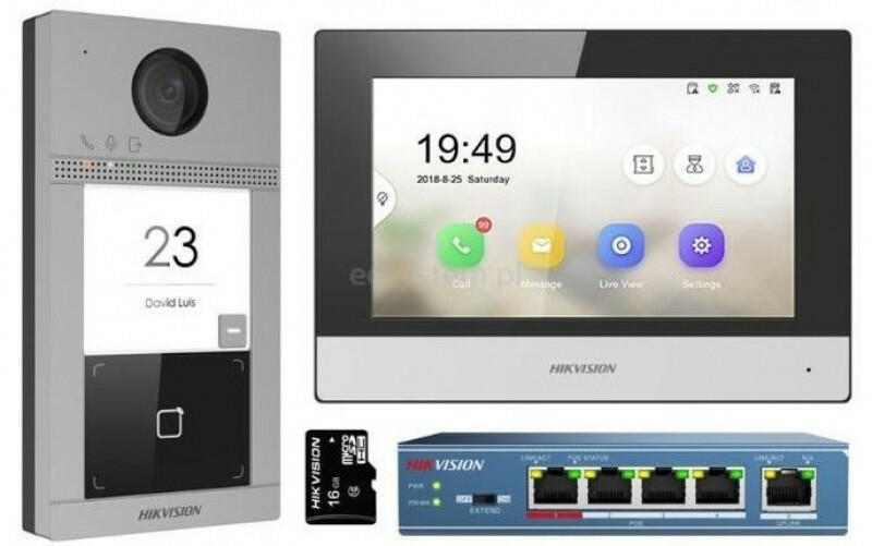 Hikvision DS-KIS604-S (C) Egylakásos IP video-kaputelefon szett; DS-KV8113-WME1(C)+DS-KH6320-WTE1 + PoE switch + 16GB microSD