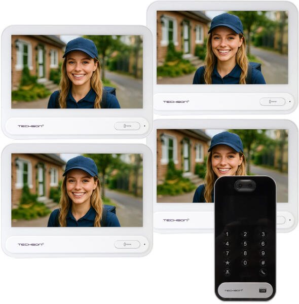 Techson 4 db TCTIS716WHITE + 1 db TCTDS302 Négylakásos Video IP kaputelefon szett (TCTIS716WHITE_4db+TCTDS302)