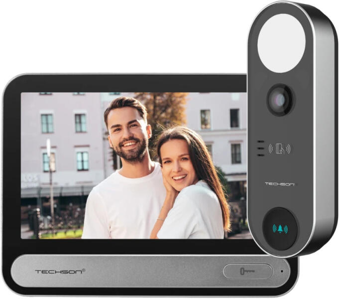 A Techson TCTIS716 + TCTDB102 egy érintőképernyős kialakítású, felületszerelt kivitelű, egylakásos IP kaputelefonszett
